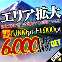 富士エリアでの即アポを初ご利用様には【期間限定】でさらに1,000円分の割引をプレゼント!!新規5,000pt+1,000ptつまり6,000円分の割引をGET♪割引などにご利用頂…