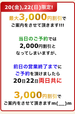 当日のお誘いでもお得ですが